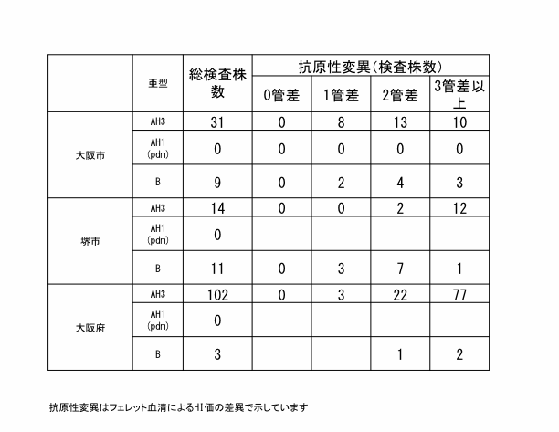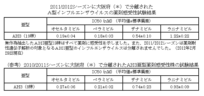 大阪府においては、定点医療機関当たりの報告数は第46週以降増加を続けており、第51週現在0.75と1.00をやや下回っていますが、三島、堺市、大阪市西部などで流行開始の指標を超え、地域的な流行が始まっていると考えられます。既に学級閉鎖等も報告されています。流行のピークは2013年2月頃と予想されます。今シーズンのインフルエンザは、主としてA香港型インフルエンザ(A/H3N2亜型)が検出されています。