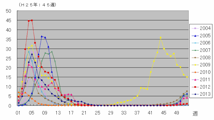 前年とのインフルエンザ流行状況の比較 〜45週(11月4日〜11月10日)