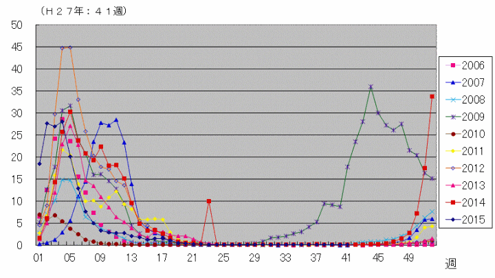 前年とのインフルエンザ流行状況の比較 〜41週(10月5日〜10月11日)